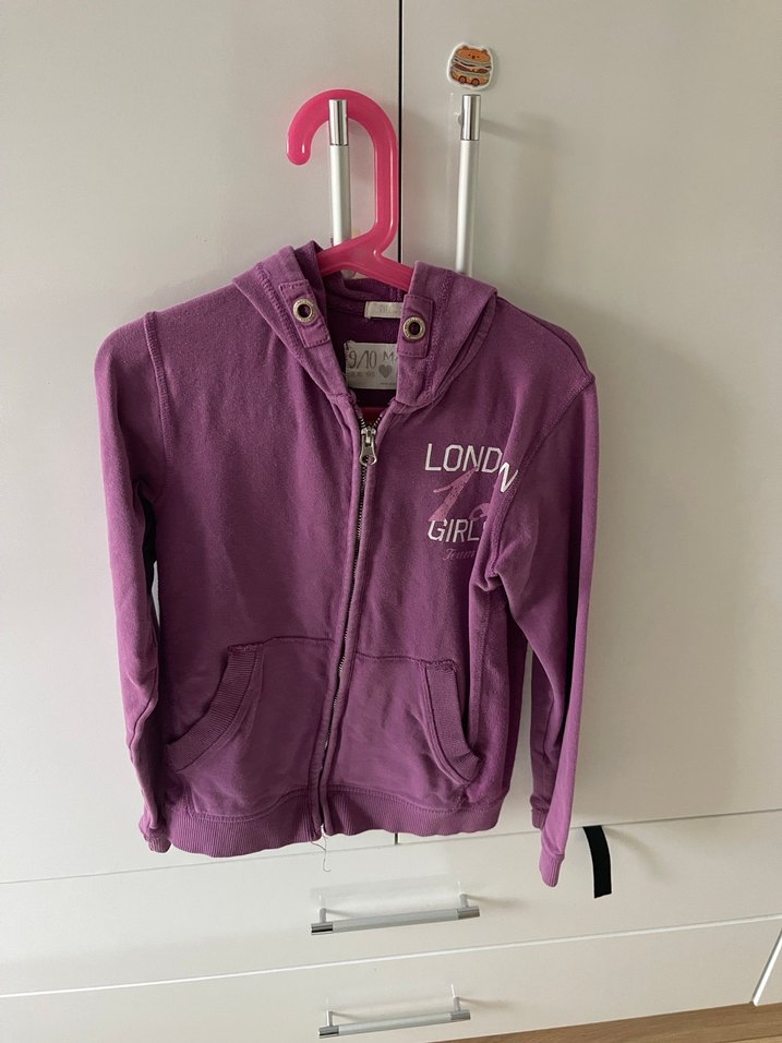 Mor kapüşonlu kız sweatshirtü, uzun kollu ve önden fermuarlı. Yumuşak fleece kumaştan, 'LONDON GIRL' baskılı, rahat sokak stili.