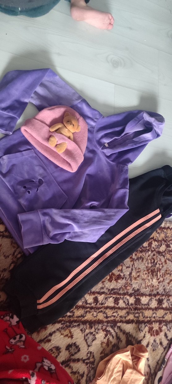 Mor Kapüşonlu Kız Sweatshirt ve Siyah Eşofman