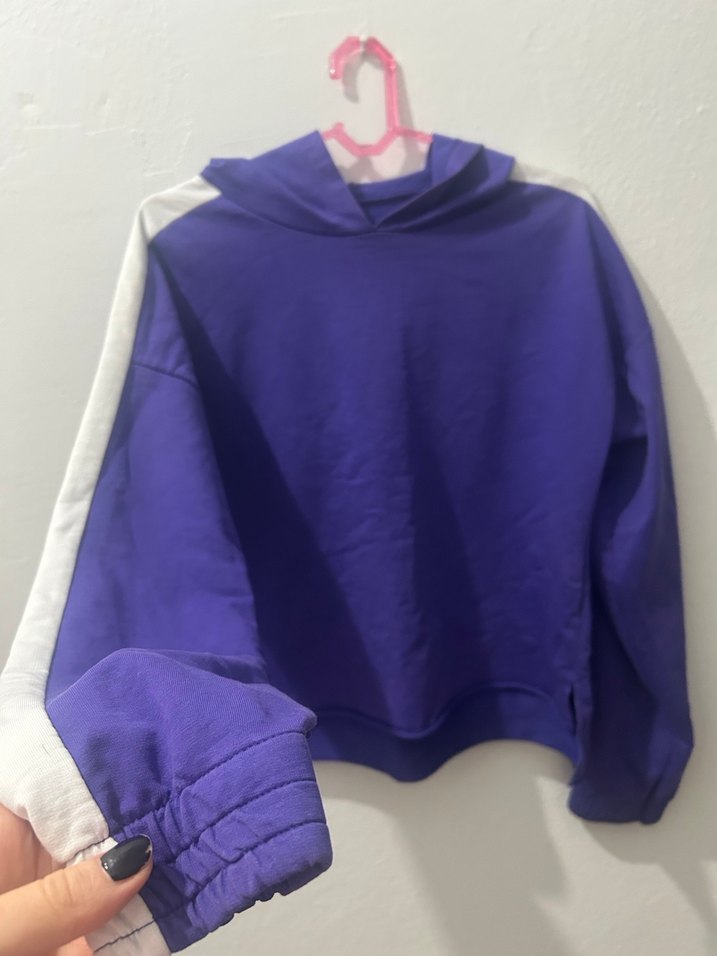 Mor kapüşonlu sweatshirt, rahat kesim ve uzun kollu. Yumuşak ve sıcak kumaştan, günlük kullanıma uygun pastel tonlarda.