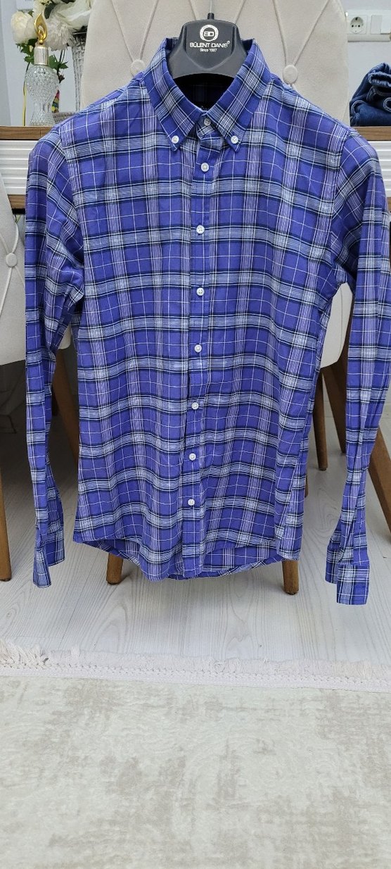 Mor Kareli Uzun Kollu Erkek Gömlek