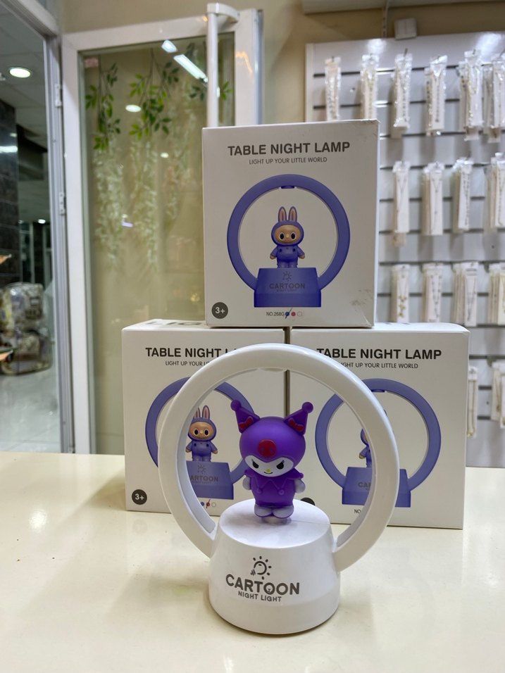 Mor renkte, 3 yaş ve üzeri çocuklar için uygun karikatür figürlü masa gece lambasıdır. Çocuk odalarına yumuşak ışık sağlar.