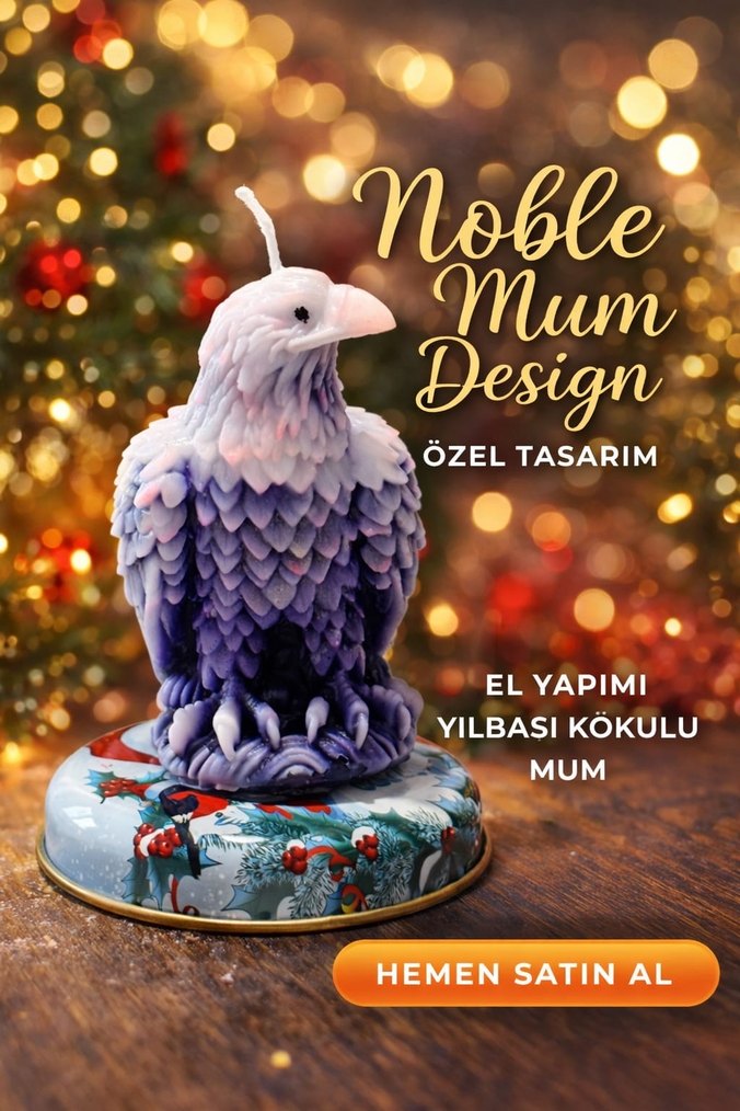 Özel tasarımlı, mor tonlarında kartal şeklinde el yapımı mum. Yılbaşı kokulu, dekoratif taban üzerinde. ️