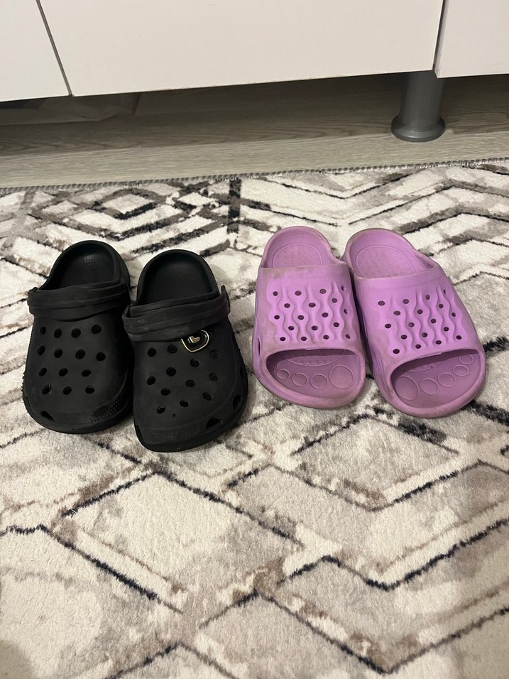 Kızlar için koyu mor renkte kauçuk terlikler, sade ve goth tarzda, desen içermeyen şık tasarıma sahiptir. Mor 29 siyah 30 numara