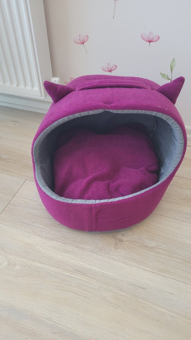 Mor renkte, kulak detaylı yumuşak kumaştan kedi yatağıdır. İç kısmı gri renkte olup kediniz için ekstra konfor sağlar.