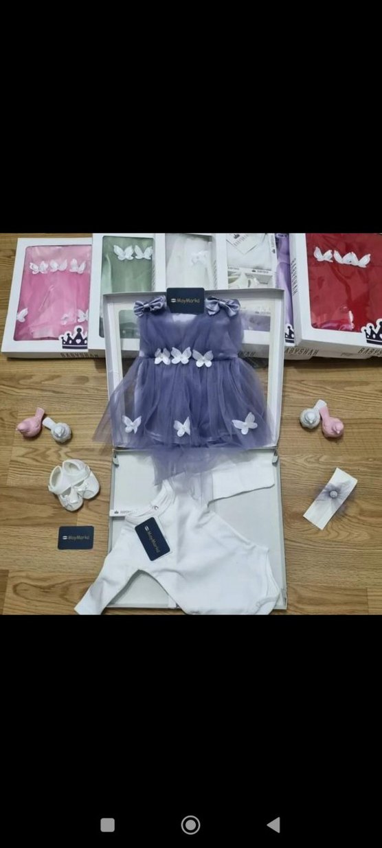 Mor Kelebek Desenli Kız Elbise bebek mevlüt seti