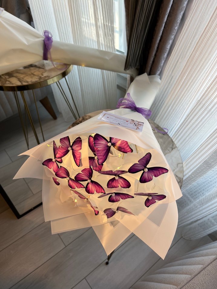 Hafif mor şeffaf kadın şemsiye, canlı kelebek desenleriyle bohem tarzını yansıtıyor. Moda tutkunları için ideal.