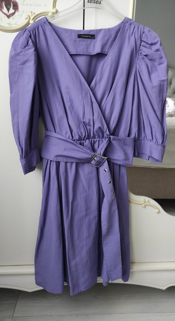 Mor Kemerli Midi Kadın Elbise