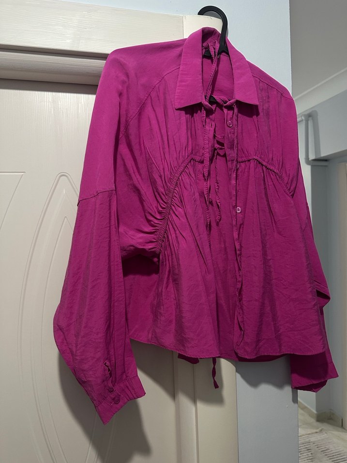Mor Keten Düğmeli Bohem Gömlek