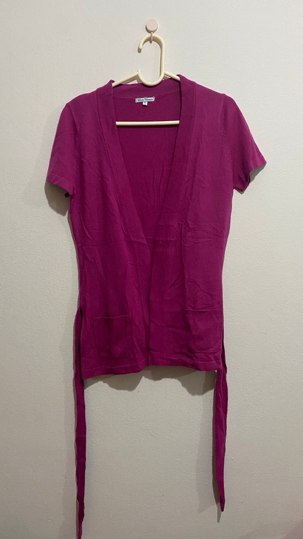 Lcw marka, Mor renkte, kısa kollu bağlamalı hırka. Rahat ve şık bir günlük sokak stili parçası. M beden.