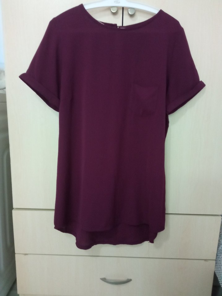 Mor renkli, kısa kollu ve yuvarlak yakalı kadın bluz. Rahat kesimi ve ipeksi dokusuyla gündelik kullanıma uygundur. ✨
