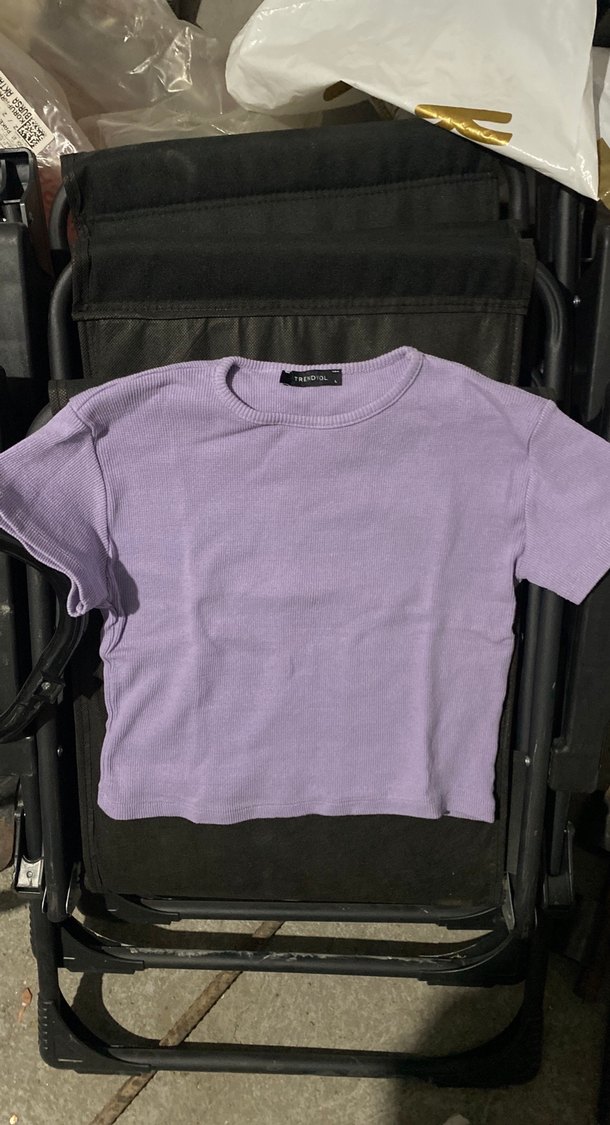 Bu mor kısa kollu tişört, keten kumaştan üretilmiş, bisiklet yaka ve vücuda oturan kesime sahip, günlük kullanım için uygundur.