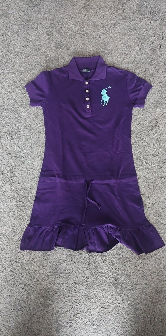 Mor renkte, kısa kollu, polo yaka ve fitted kesime sahip midi elbise. Etek kısmında fırfır detayı bulunur, yumuşak ve sıcak kumaştan yapılmıştır.
