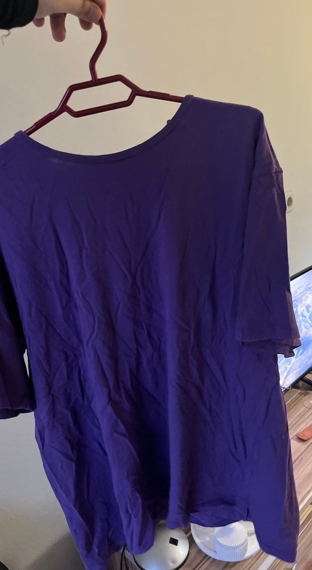 Mor renk, salaş kesim hamile bluzu. Yuvarlak yaka ve kısa kollu, ipeksi dokulu ve drapeli detaylı, günlük rahat kullanım için uygun.