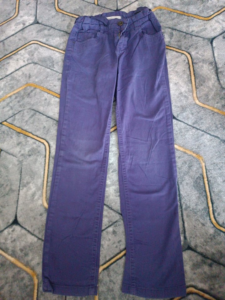 Mor renkli, düğmeli ve regular fit kesime sahip kız çocuk denim pantolonu. Rahat ve sade tasarım sunar. Bel kısmı lastiklidir ayarlanabilir