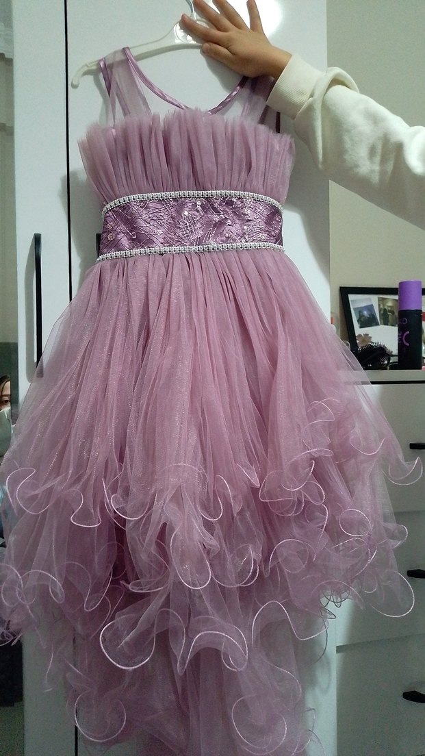 askılı mor kız çocuk elbisesi 1 kere kullanıldı hasarsız 10 11 yaş
