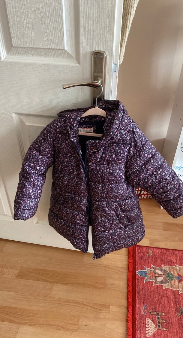 Mor renkli, düğmeli ve yakalı, triko kumaştan yapılmış kız çocukları için dar kesim kaban. Trendy ve rahat stil için uygundur.