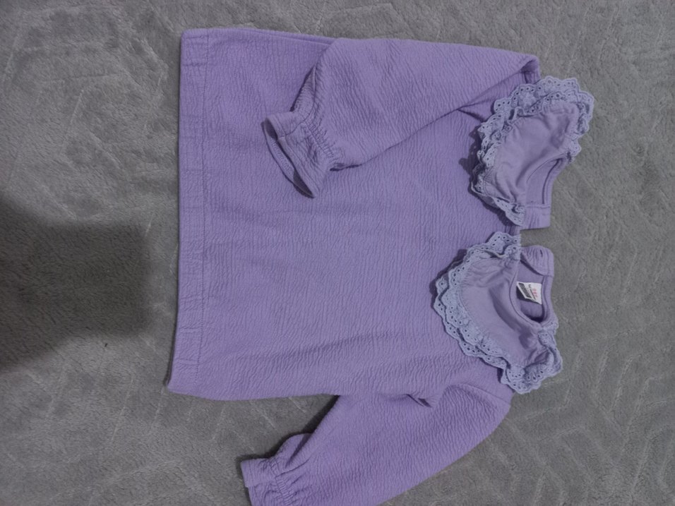 Mor pastel renkte, keten kumaştan yapılmış kız çocuk bluzu. Uzun kollu, yakalı ve bol kesimdir. Fırfır detaylarıyla sade ve normcore tarzda. ikisinin fiyati