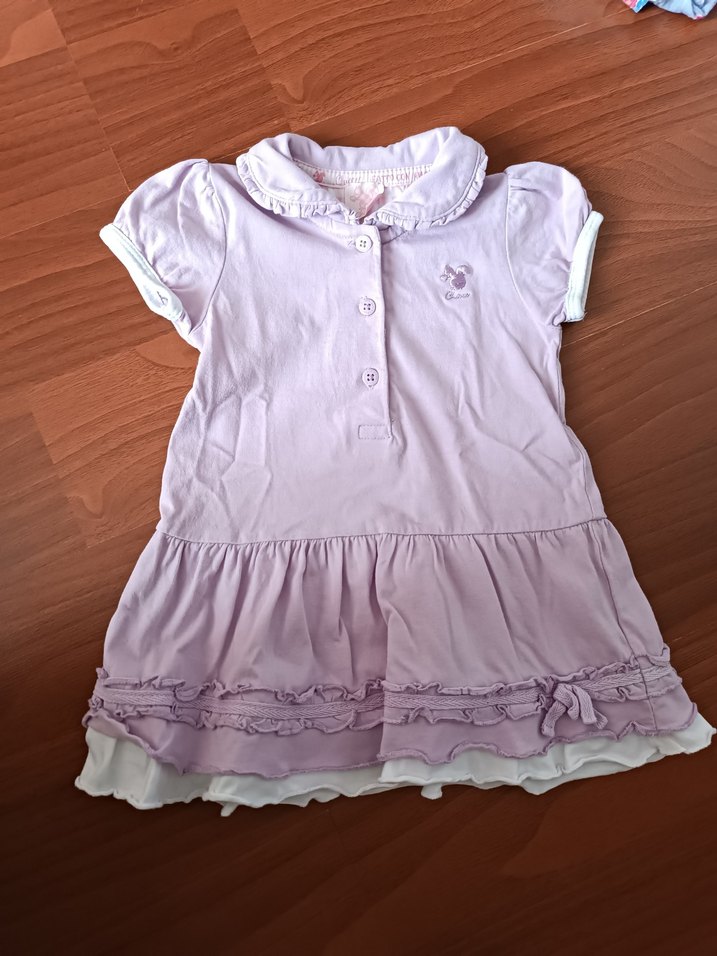 Fitted kesim, kısa kollu, yuvarlak yaka kız çocuk elbisesi. Pastel mor renkte, pamuklu kumaştan, etek kısmında fırfır detaylıdır.9 aylık diyor fakat ben 6 aylıkken giydirdim