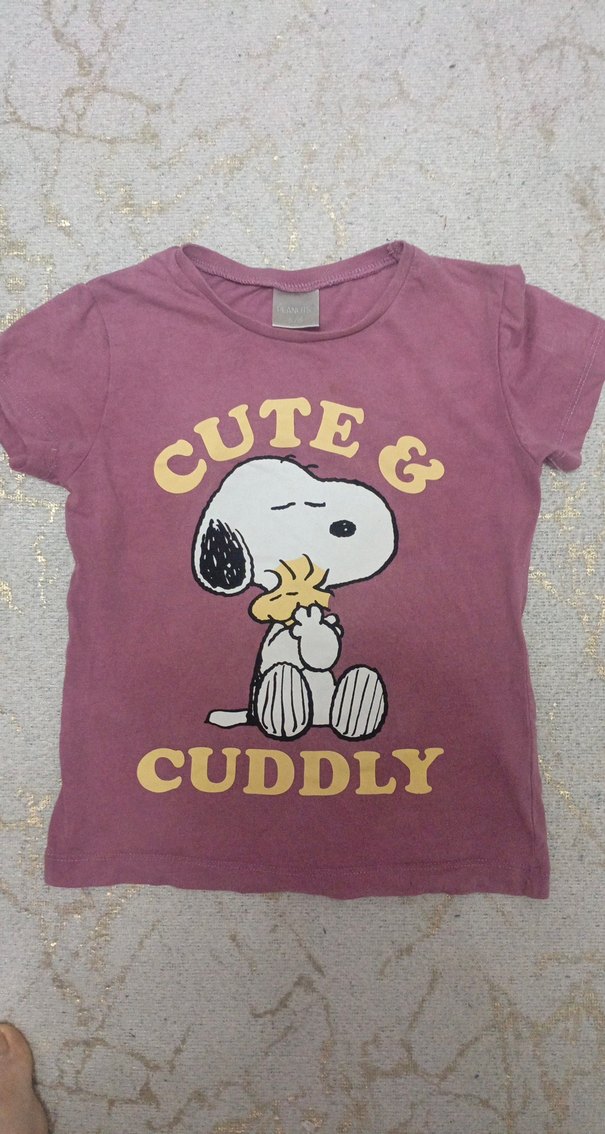 Pamuklu, mor renkli, kısa kollu kız çocuk tişörtü. Dantel detaylı, baskılı ve fitted kesim. "CUTE & CUDDLY" yazılı.