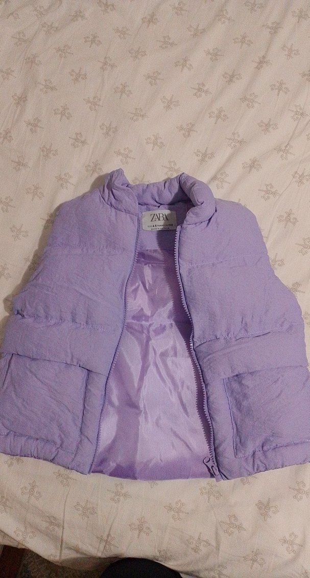 Mor pastel renkte, kürklü detaylı, yakalı ve kolsuz kız çocuk yeleği. Sokak stiline uygun, yumuşak ve sıcak kumaştan, dar kesim.