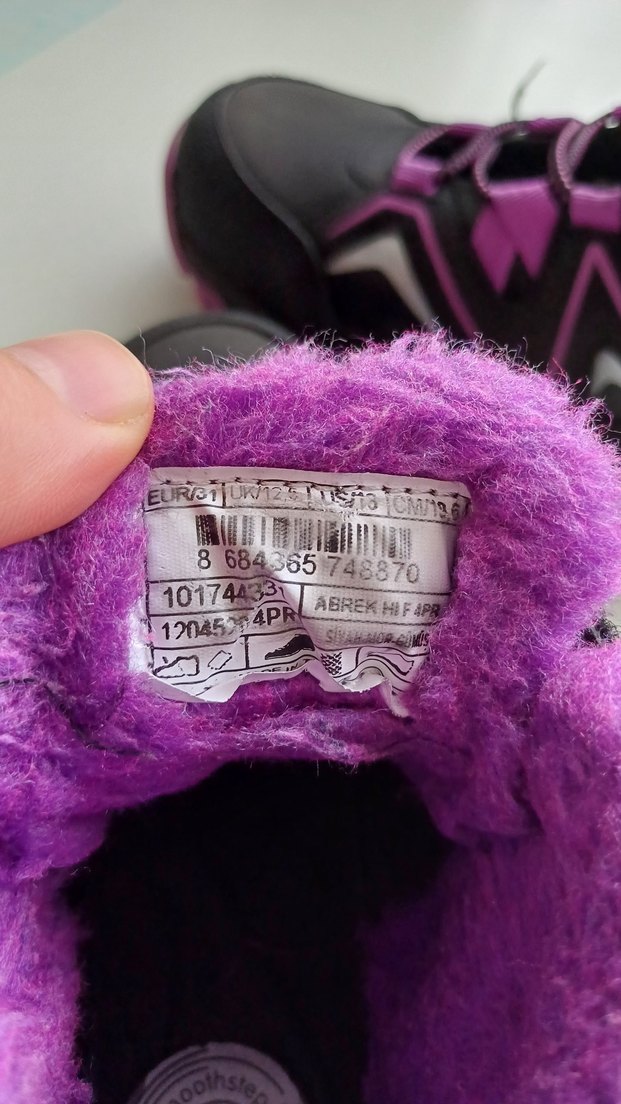 Mor renkte, baskılı gotik tarzda kız çocuk bot Yumuşak ve sıcak tüylü kumaştan, kolay giyilen Velcro bantlı. Moda tutkunları için uygun.
