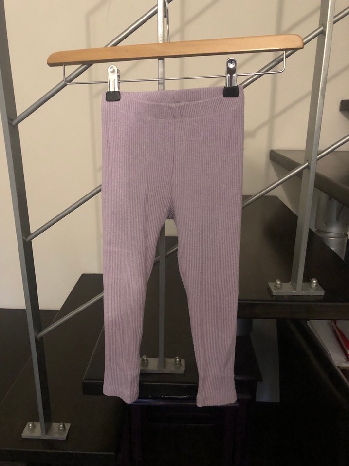 Mor renkli, dar kesim kız çocuk taytı, yumuşak sentetik kumaştan yapılmıştır ve sade desensiz tasarımıyla trend bir günlük şıklık sunar.