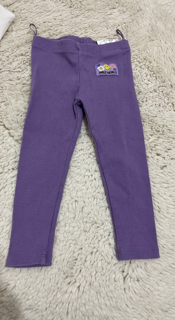 Mor, yumuşak ve sıcak kumaştan yapılmış, elastik bel bantlı kız çocuk taytı. Düz ve desensiz, sokak stiline uygun.