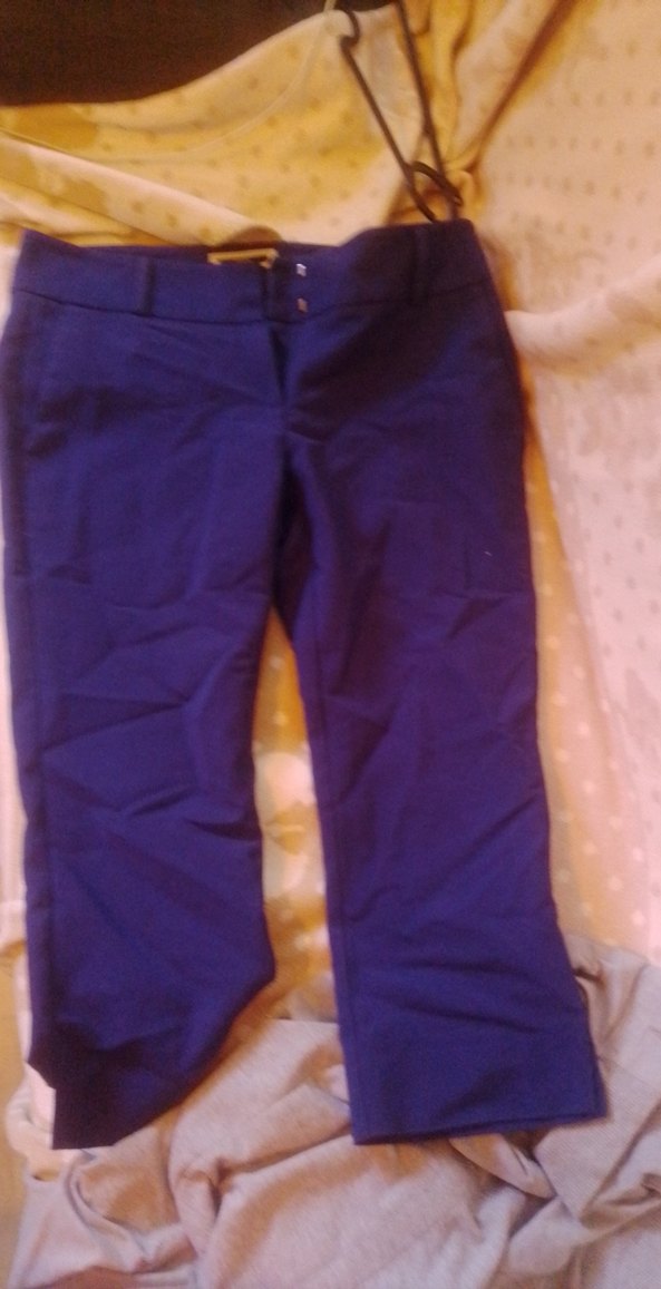 Kemerli, midi boy, koyu mor renkli, düz kumaştan yapılmış kadın pantolonu, ofis kullanımı için uygun.