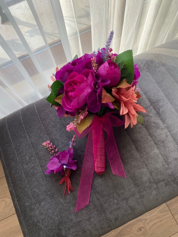 Ortanca, Şakayık, yıldız çiçeği ve kır çiçeklerinden oluşan bir gelin buketi. Yanında damat yaka çiçeği de bulunmaktadır. Hiç kullanılmadı, satmak için kendim hazırladım. Sipariş üzerine değil, görselde gördüğünüz çiçeğin kendisi gelecektir. Son görseldeki tüm buketlerin ilanları sayfamda mevcut