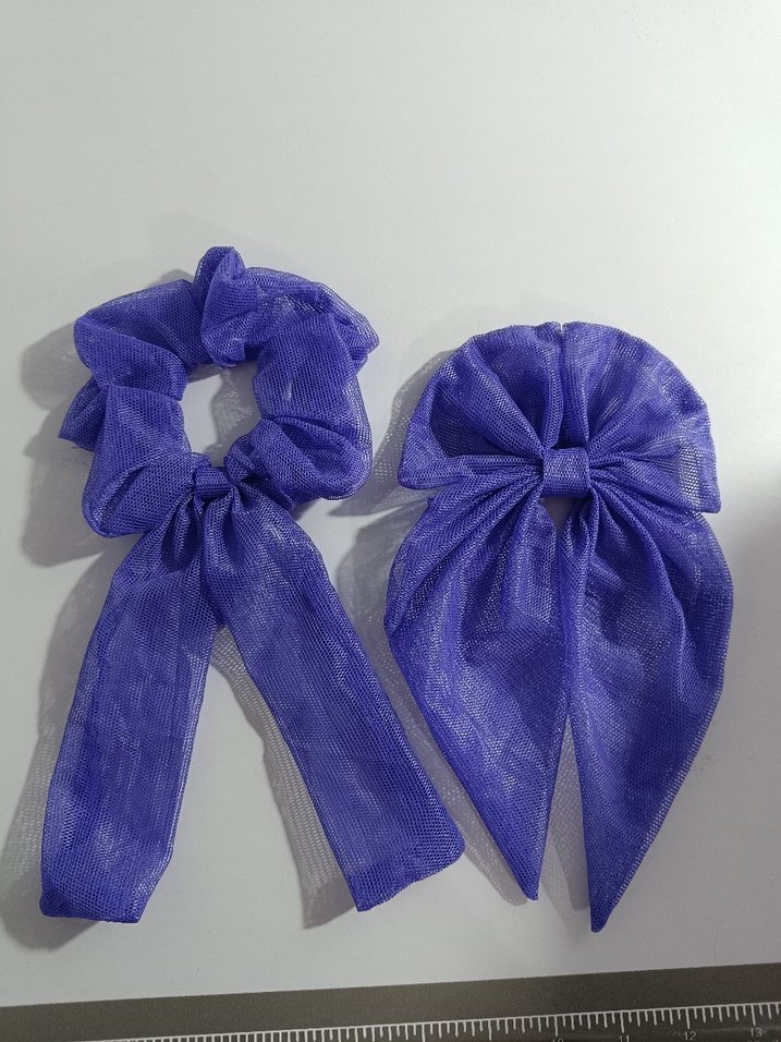 tül kumaştan yapılmış, kurdele detaylı mor saç aksesuarları, modaya uygun ve avangart tarz için ideal.