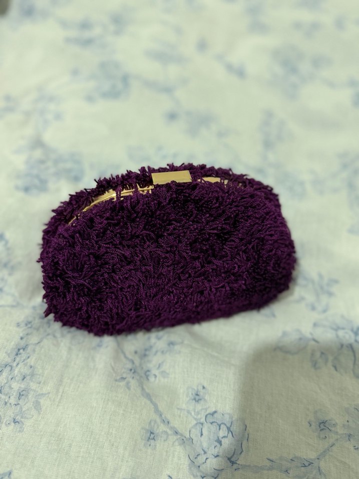 Mor renkte, kürk detaylı yumuşak dokulu kadın portföy çanta. Renkli ve tie-dye desenli, günlük kullanıma uygun rahat bir model.