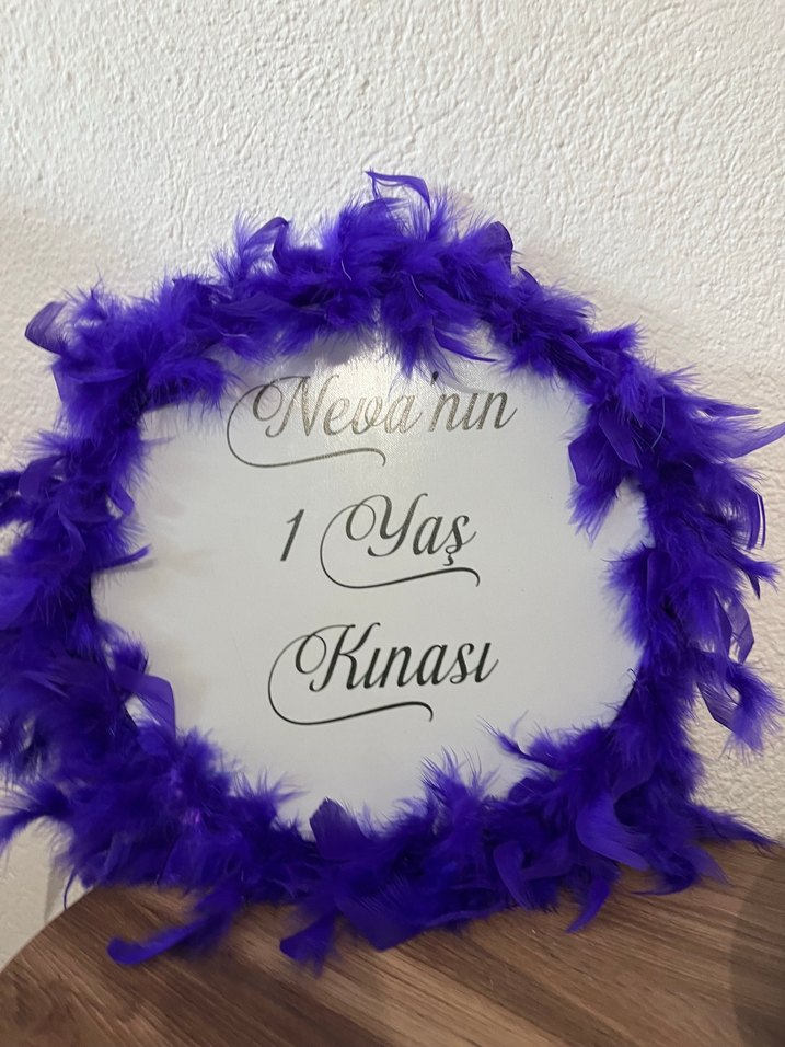 Mor renkte tef , kürklü detaylı bohem düğün aksesuarı, parlak görünüme sahip ve özel gün yazılıdır. İstediğiniz renk yapılır yazı yazılır.