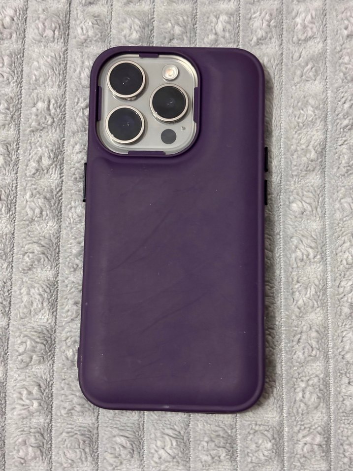 Mor renkte, kürklü detaylı telefon kılıfı. Gri tonlarıyla dikkat çeken, farklı bir counterculture tarzı sunar.