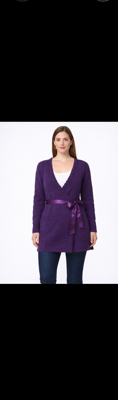 Mor kuşaklı, V yakalı, fitted kesim uzun kollu midi boy triko tunik. Günlük kullanıma uygun rahat bir modeldir.