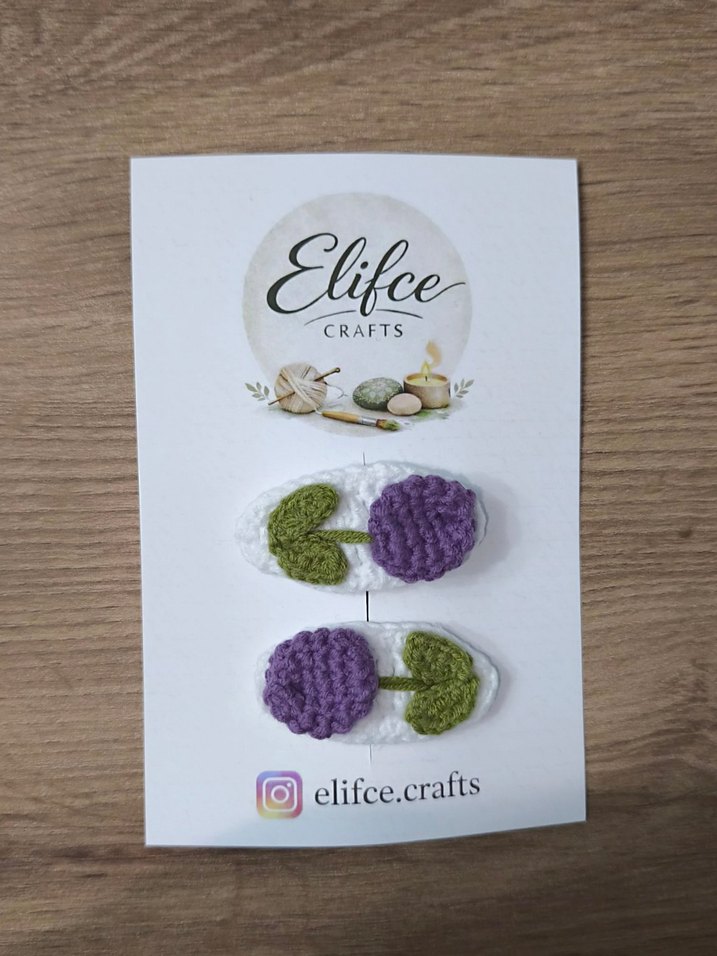 Mor Lale Örgü Saç Tokası Çiftli