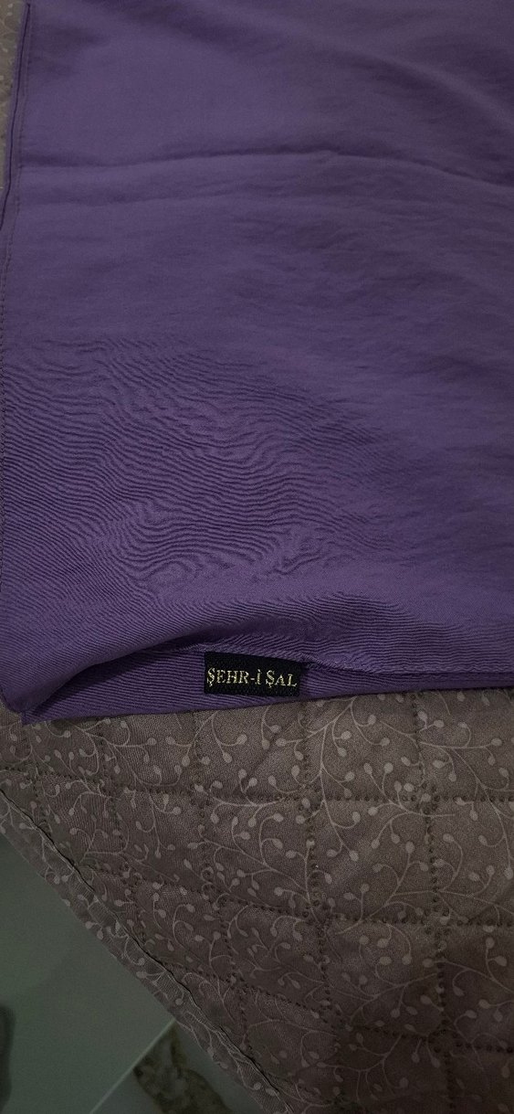 Kadınlar için mor/lila parlak sentetik kumaştan, drapeli tasarıma sahip minimalist sokak stili şal. Üzerinde SEHR-iSAL etiketi bulunur. Yumuşak kumaş olup 4 mevsime uygundur. Herhangi bir defo bulunmamaktadır.
