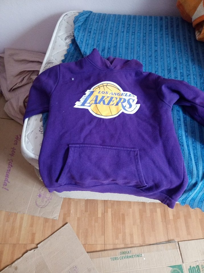 Mor renk, uzun kollu ve bisiklet yaka erkek sweatshirt. Rahat kesim, yumuşak ve sıcak kumaş, ön cep ve Los Angeles Lakers baskısı bulunur. Örgü dokulu konfor sağlar.