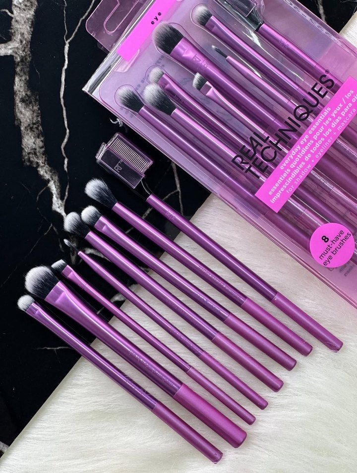 Yumuşak kıllara sahip koyu mor makyaj fırçaları seti, farklı makyaj uygulamaları için uygundur. Kolay kullanım için şık sapları vardır.