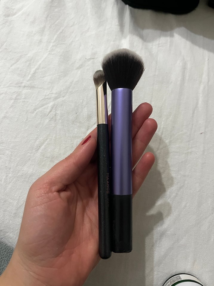 İki farklı boyutta, yumuşak kıllara sahip mor saplı makyaj fırçası seti. Detay ve geniş uygulama için uygundur. ️
