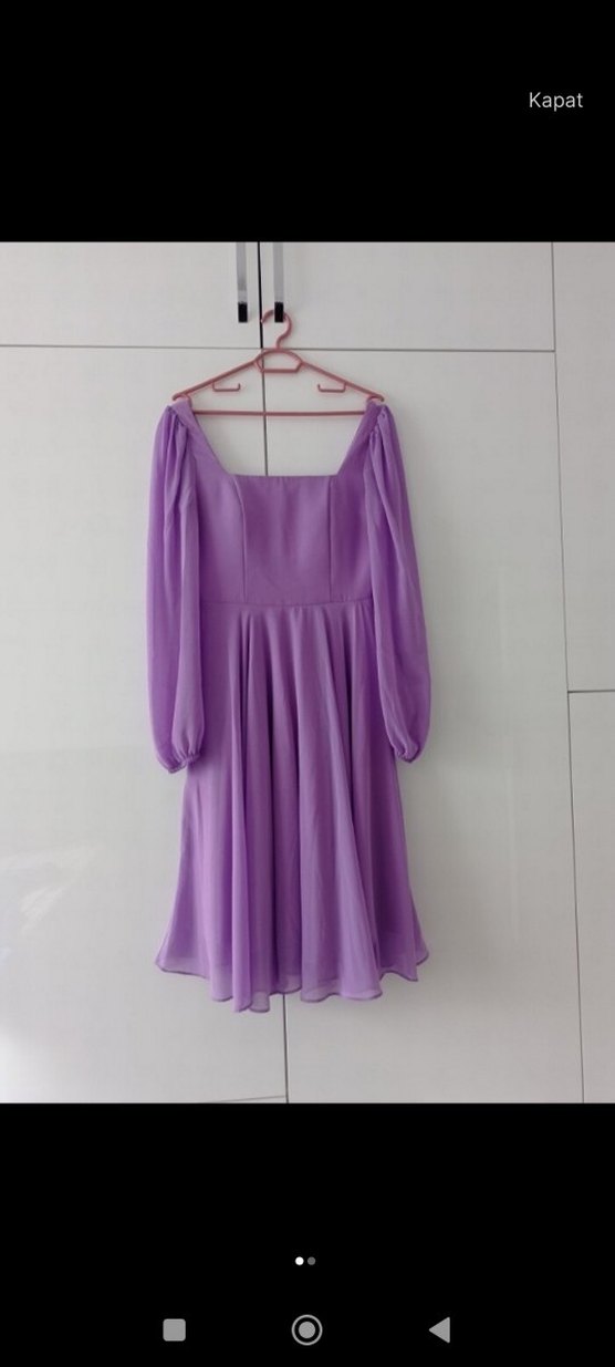Pastel mor midi elbise, salaş kesim ve dökümlü ipeksi kumaş ile. Kayık yaka ve uzun kollu, modern klasik tarzda, düğün için uygun. 40 42 44 bedene uyumludur arkası ipli bağlaması olduğu için bedene göre ayarlaniyor