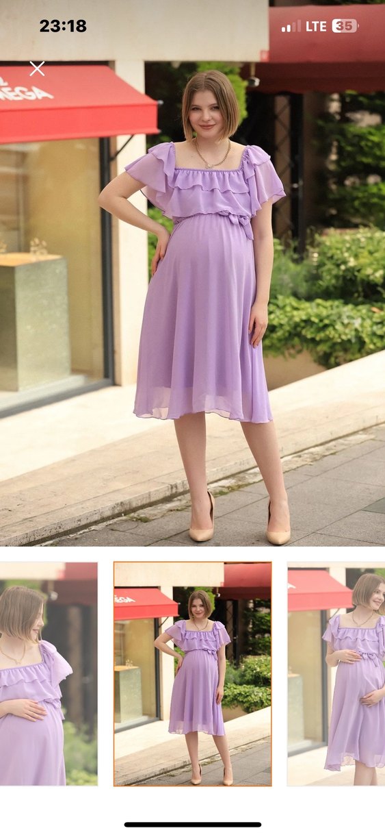 Mor Midi Hamile Elbisesi, Fırfırlı, Askılı