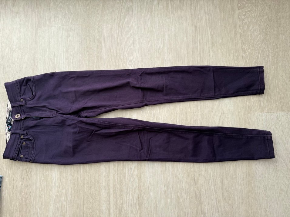 Koyu mor renkte, midi boy ve dar kesim kadın kumaş pantolon. Düz ve yumuşak sentetik kumaştan, günlük kullanıma uygun minimal ve rahat bir stil sunar.
