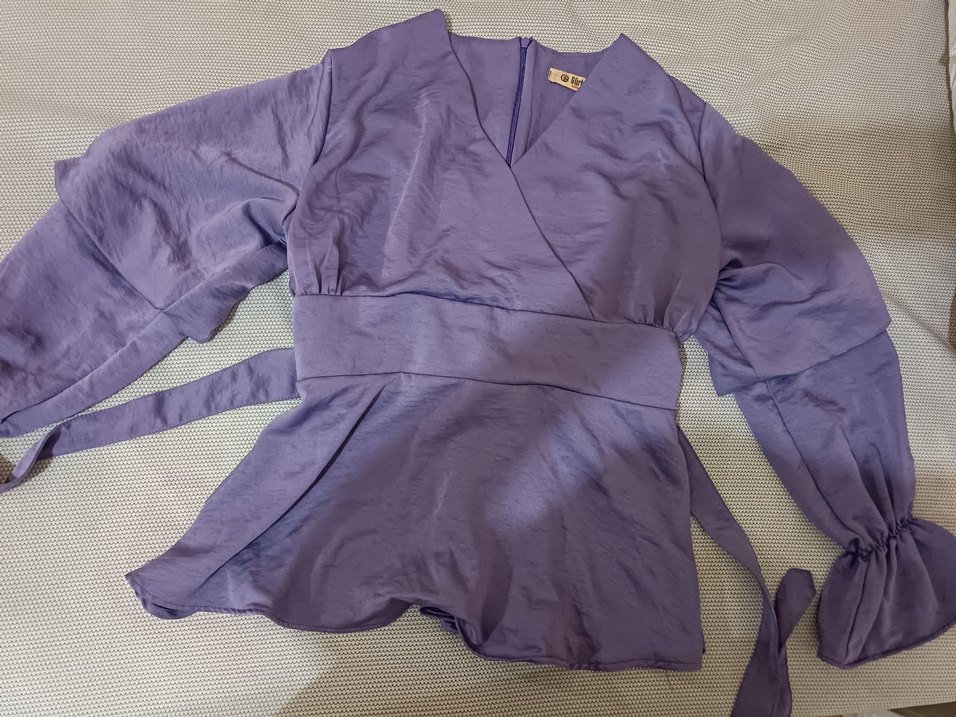Pastel mor renkte, uzun kollu ve salaş kesimli midi boy kadın gömleğidir. Desensiz ve rahat, günlük kullanıma uygundur.