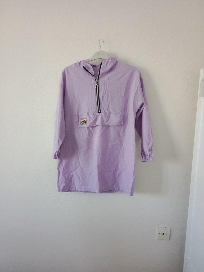 Mor Midi Kadın Yağmurluk Fermuarlı