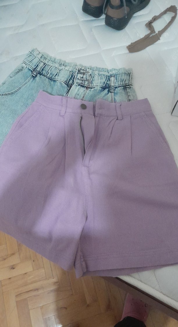 Pastel mor midi şortlar, rahat kesimi ve pamuklu yumuşak kumaşıyla günlük kullanıma uygun, zahmetsiz şıklık sunar.