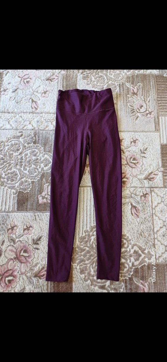 Koyu mor, sentetik kumaştan, vücuda oturan kadın spor taytı. Spor ve günlük sokak stiline uygun, zahmetsiz şıklık sunar.