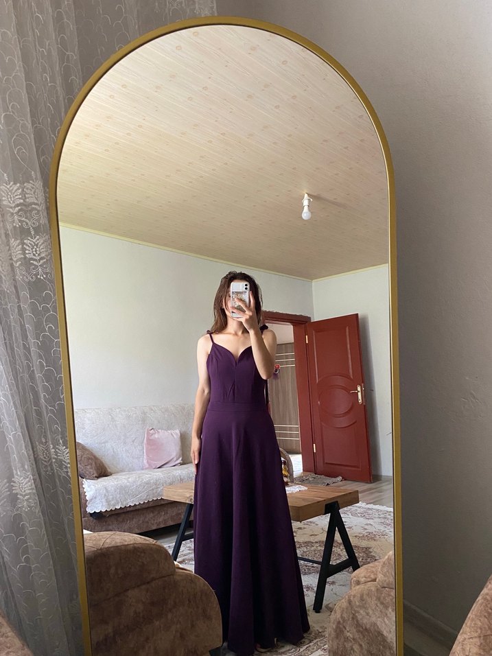 Mor midi boy V yaka ve kolsuz tasarıma sahip, normal kesim kadın elbise. Minimalist tarzıyla zahmetsiz şıklık sunar, düğünler için uygundur.