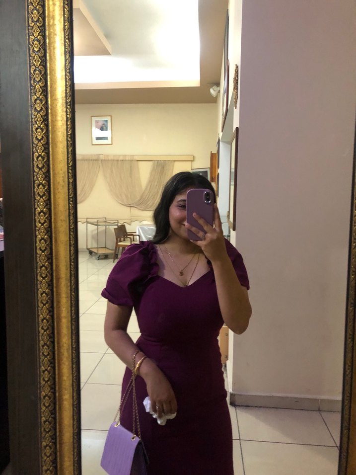 Mor renginde, V yakalı, kısa kollu ve midi boyda, ince kesimli, ipeksi dokulu kadın elbisesi. Minimalist tarzıyla romantik akşamlar için zahmetsiz şıklık sunar. Sadece 1kere giyildi yırtığı çiziği yoktur