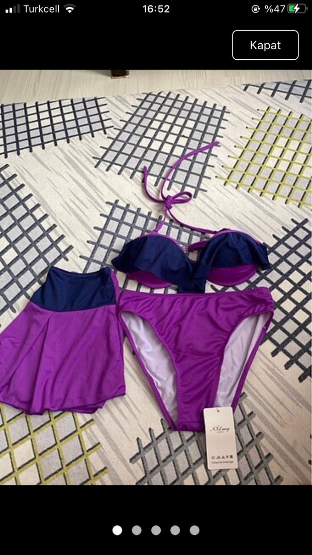 Mor renkli, kısa kesim ve askılı bikini takımı, modern ve zahmetsiz şıklık sunar. Cesur athleisure tarzı için ideal plaj kıyafeti. ️
