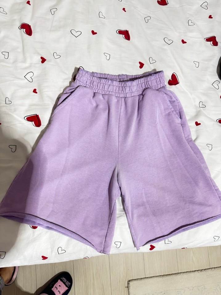 Yumuşak pamuklu kumaştan mor mini şort, rahat kesimiyle trend bir günlük stil sunar. Sokak modasına uygun, zahmetsiz şıklık sağlar.